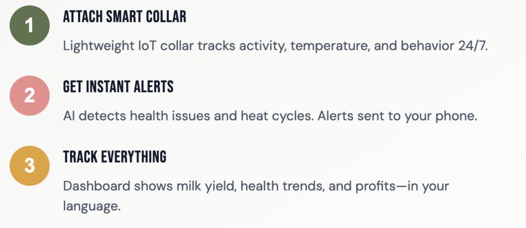 HolyCow uses IoT smart collars and real-time analytics to help farmers monitor cattle health, boost milk productivity, and increase profitability—all from your mobile phone.